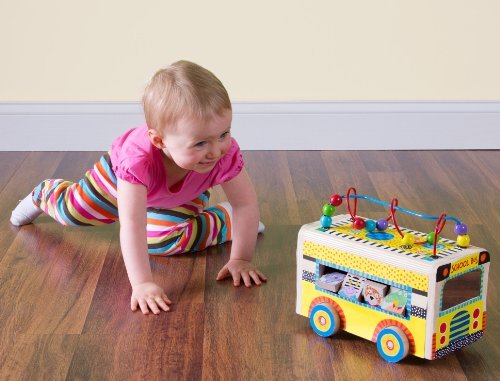 ALEX Toys ALEX Jr. Rolling Busy Bus provides babies with so much to do! Turn, spin, flip and roll! This wooden school bus features a curvy bead maze, peek a boo window sliders, turning picture tiles, spinning gear, mirror and rolling wheels. It’s a great early learning toy for developing visual stimulation, hand eye coordination and cause and effect. Measures 9.5”H x 10.5”L x 5.5”W. Recommended for children 10 months of age and older.