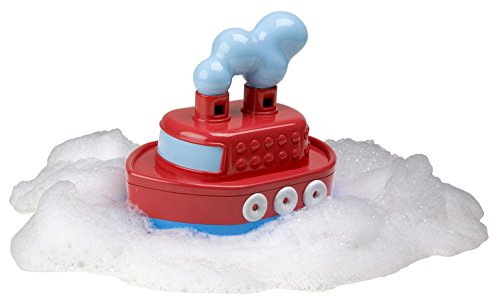Push the tugboat down in the bathwater to hear 'TOOT' in two tones! Sound is created by air rushing through 2 whistles in the smoke stacks when pushed down in the tub. Two different whistle tones makes it sound just like a real tugboat.
