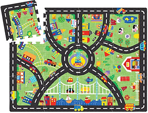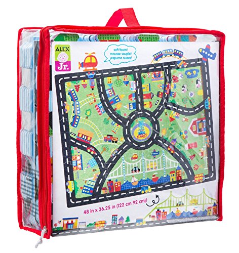 ALEX Jr. City Fun Play Mat lets your little one explore the city while playing! The 48-inch by 36-inch play mat starts out as a colorful and soft 12-piece floor puzzle. Once their city is complete, kids can bring their cars, trains, dolls, action figures or any other toys into town for adventures. When the day is over, just take it apart and place it all back in the reusable storage bag. Recommended for children 12 months of age and older.
