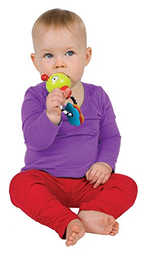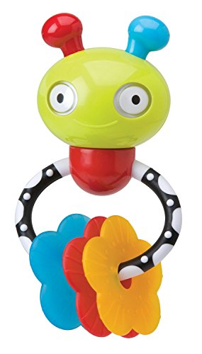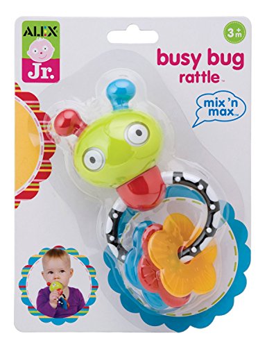 ALEX Jr. Busy Bug Rattle keeps baby active. Bright colors and fun sounds with attract your child and various textures will sooth their aching gums. Shake, twist or bite this toy ? the bug remains smiling. Recommended for children 10 months of age and older.
