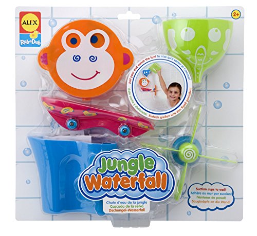 The ALEX Toys Rub a Dub Jungle Water Fall makes a cool, interactive waterfall in your tub. The pieces stick to the tub or tile wall with suction cups, allowing a simple process of pouring the water into the elephant funnel to start the action. Watch the monkey make eyes at you as the water cascades down the slide and then makes the fan spin. It's a wacky, wet good time and makes for good clean fun in the tub. Recommended for children 2 years of age and older.