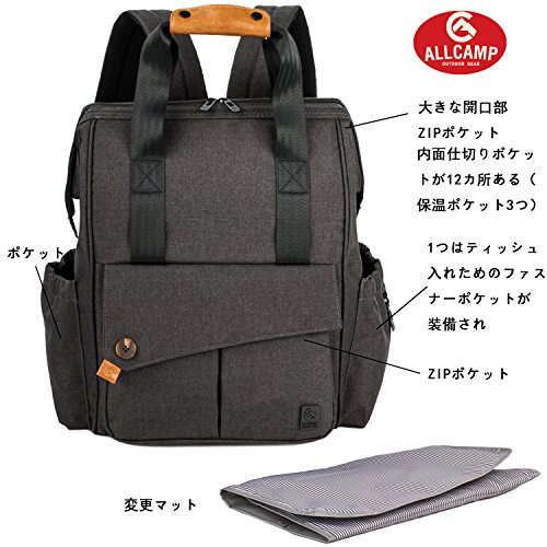 【ALLCAMP】 マザーズバッグ リュック 大容量 多機能 マザーズバッグ ベビーバッグ ママのバックパック (ブラック)