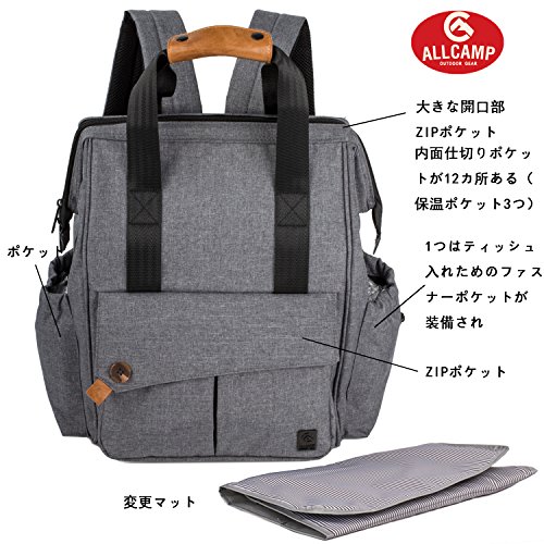 【ALLCAMP】 マザーズバッグ リュック 大容量 多機能 マザーズバッグ ベビーバッグ ママのバックパック (グレー01)