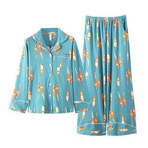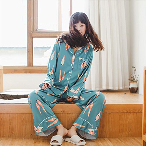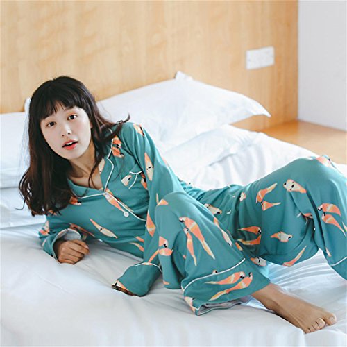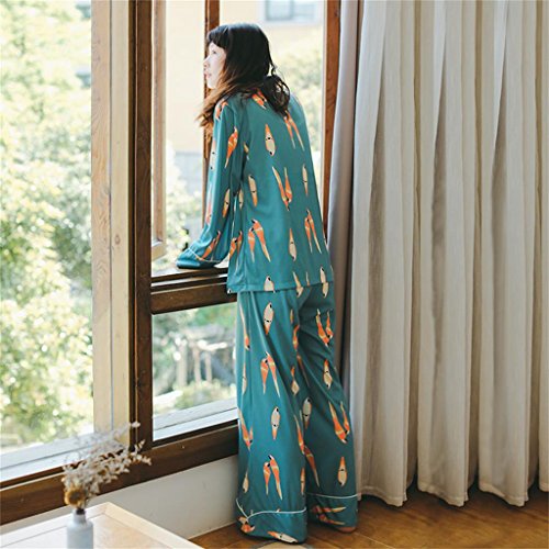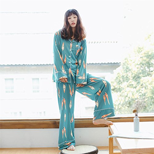 ALUP- 秋と冬 - パジャマホームサービスコットンカーディガンワイドレッグパンツホームサービススーツ ( 色 : As shown , サイズ さいず : L l )