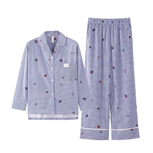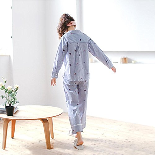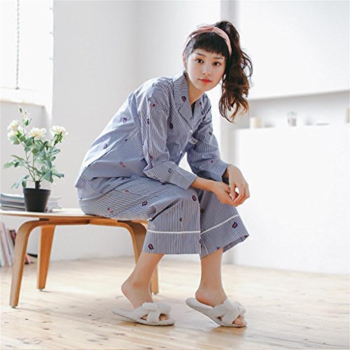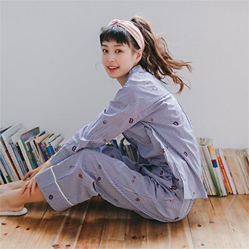 ALUP- 秋と冬 - パジャマホームサービス綿ストライプカーディガンスーツ ( 色 : 青 , サイズ さいず : S s )