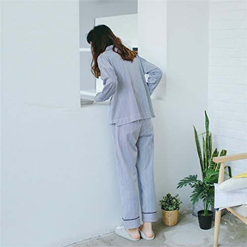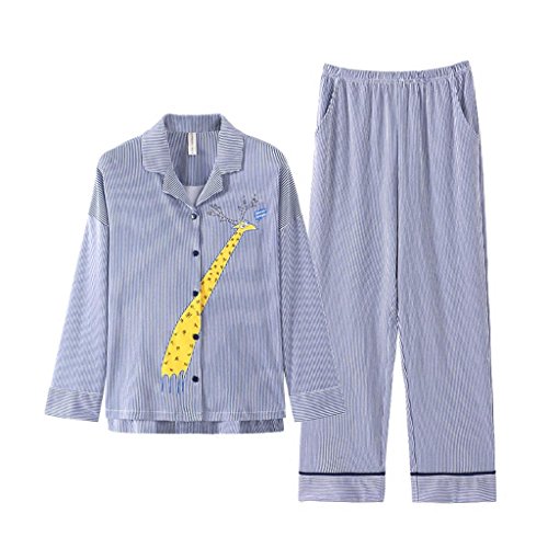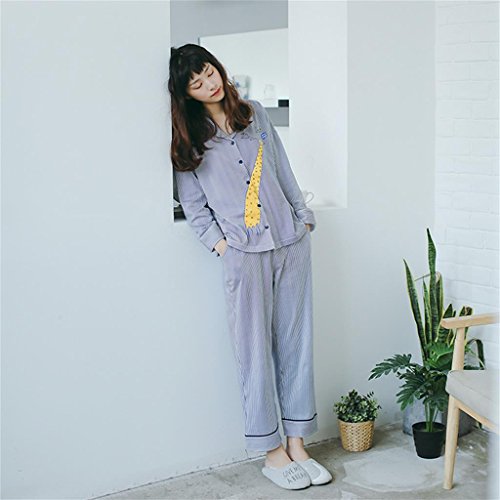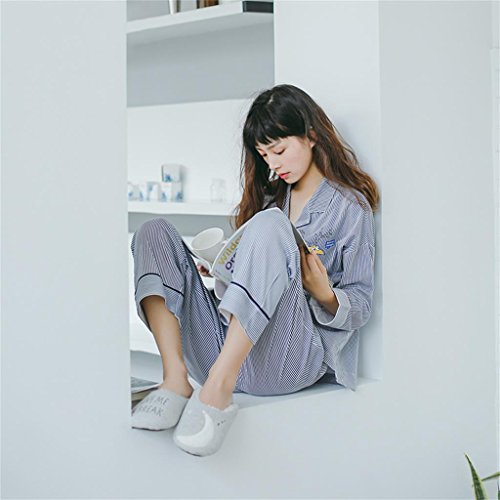 ALUP- 秋と冬 - パジャマホームサービス漫画ストライプカーディガン綿スーツ ( 色 : 青 , サイズ さいず : L l )
