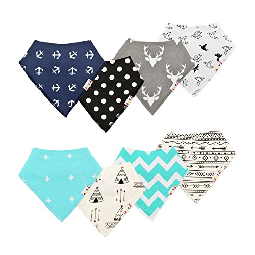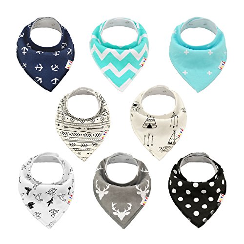 表:100%コットン、裏:スーパー吸水力ポリエステル羊毛。Alva スタイバンダナ型ビブ、男の子と女の子も完璧なプレゼント
