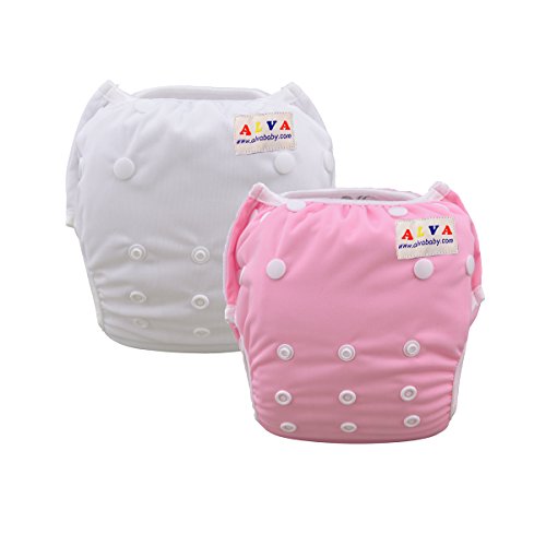 ALVABABY 水泳用おむつ 2枚パック フリーサイズ 再利用可能 洗濯可能 0-36月齢 (女児)