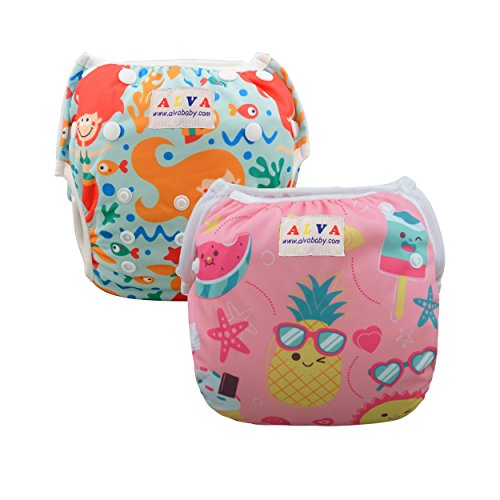 ALVABABY ベビー 防水 水着 再利用可能 布 スイムパンツ 水遊び用 おむつ 可愛い 2枚セット SWD37-39-JP