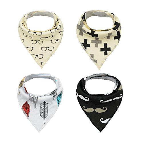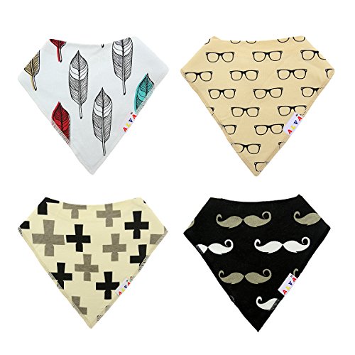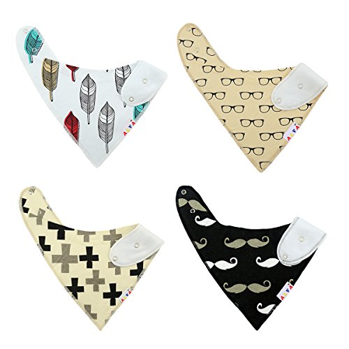 表:100%コットン、裏:スーパー吸水力ポリエステル羊毛。Alva スタイバンダナ型ビブ、男の子と女の子も完璧なプレゼント