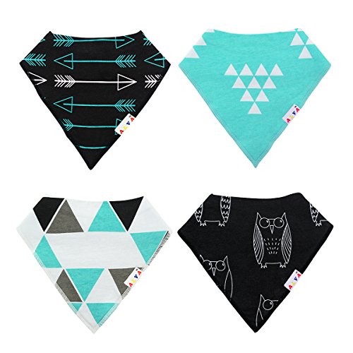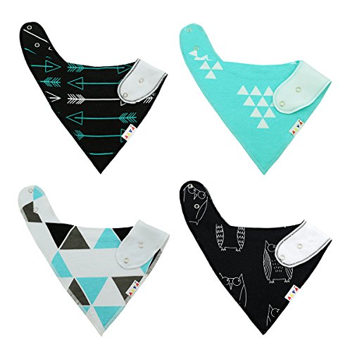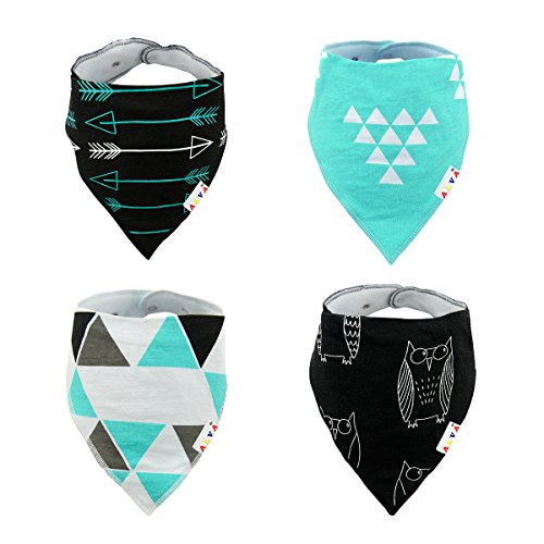 表:100%コットン、裏:スーパー吸水力ポリエステル羊毛。Alva スタイバンダナ型ビブ、男の子と女の子も完璧なプレゼント