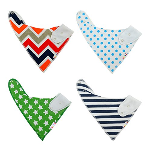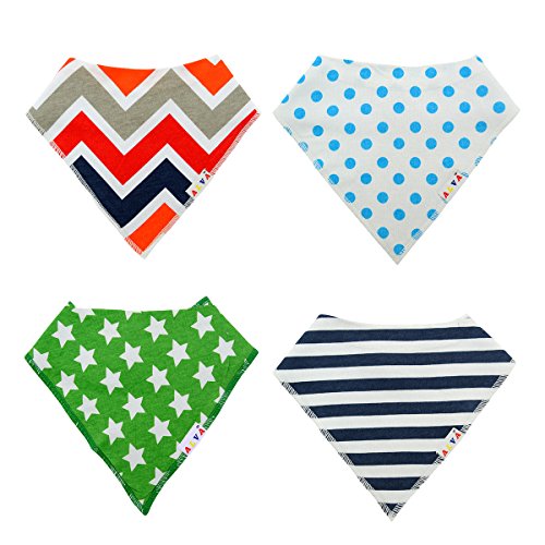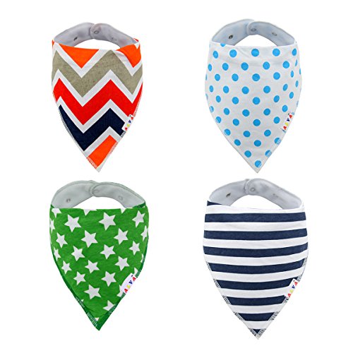 表:100%コットン、裏:スーパー吸水力ポリエステル羊毛。Alva スタイバンダナ型ビブ、男の子と女の子も完璧なプレゼント