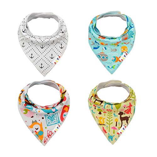 表:100%コットン、裏:スーパー吸水力ポリエステル羊毛。Alva スタイバンダナ型ビブ、男の子と女の子も完璧なプレゼント