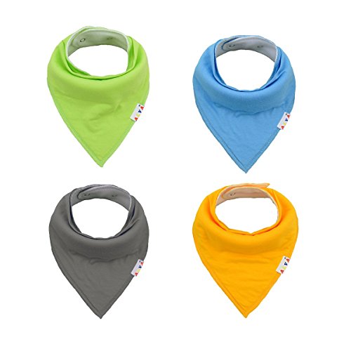 表:100%コットン、裏:スーパー吸水力ポリエステル羊毛。Alva スタイバンダナ型ビブ、男の子と女の子も完璧なプレゼント