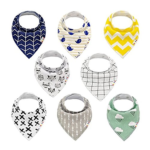 Alva BabyスタイリッシュなユニセックスベビーバンダナDrool Bibs for Boys and Girls 8パックのスーパー吸収性ベビーギフト設定 US サイズ: 3-24 Months