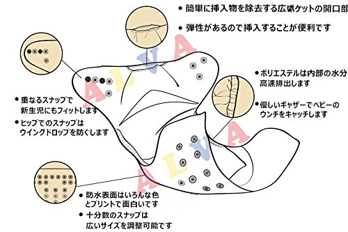 布おむつカバーと布パット(挿入物)を別々に洗ってください。ほかの服に一緒に洗わないでください。少しの塩を入ると洗うことにススメます。