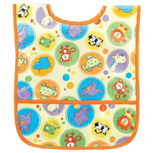 This easy to clean Small Laminated Bib will be a favourite at mealtime.It has a Hook and loop closure and a pocket at the bottom to catch crumbs and spills.The bib has a fun print and is made in the USA.The laminated fabric makes it simple to wipe it off, but it is also machine washable.It is ideal for babies and young toddlers.