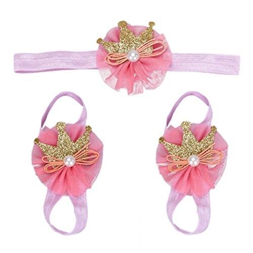 Ama ( TM )ベビー幼児幼児女の子頭飾りリボン付き足裸足サンダル+ヘアバンドセット カラー: ピンク