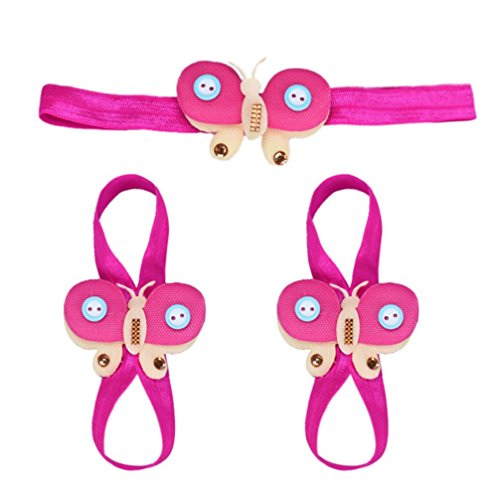 Ama ( TM )ベビー幼児幼児女の子頭飾りリボン付き足裸足サンダル+ヘアバンドセット