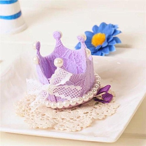 Ama ( TM )ベビーガールズキッズレースパールクラウンヘアクリップヘアピン子ヘアアクセサリー US サイズ: 5.5cm*5.5cm カラー: パープル