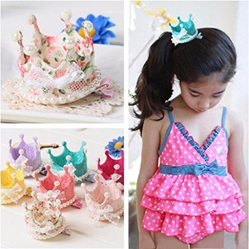 1 xパールクラウンレースのキッズ赤ちゃん女の子ヘアピンヘアクリップティアラアクセサリー小売りパッケージなし