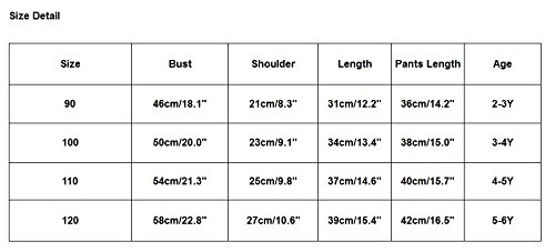 サイズ: 110バスト肩幅: 54 cm / 21.3 "肩: 25 cm / 9.8 "長さ37 cm / 14.6 "パンツの長さ: 40 cm / 15.7 "年齢: 4 – 5y