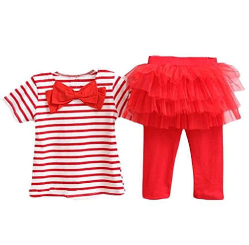 Ama ( TM ) 2 pc /セット赤ちゃん女の子蝶結びトップTシャツ+チュチュスカートレギンスパンツOutfit カラー: ホワイト