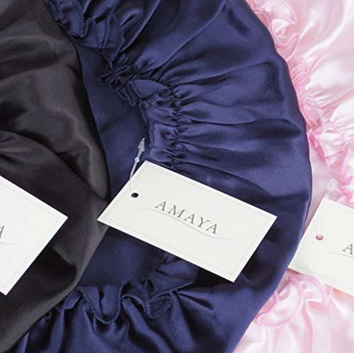 【AMAYA】 シルク ナイトキャップ 天然シルク100% ミドル ロングヘア 用 大判サイズ (ブラック)