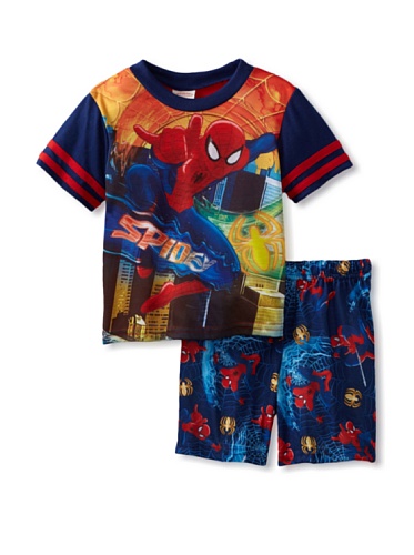 Spidey is here and ready for action! These flame resistant pajamas for toddler boys feature Spiderman ready to battle the villains. PJ set has a pull over the head top and pull on shorts with an all over print. Varsity Striping on the sleeves and contrast trim at the neck finish off these jammies nicely. Machine washable and easy to care for.
