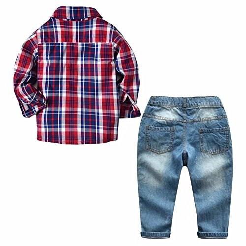 AMIGOYO 男の子 子供服 チェック柄 セット シャツ + ジーンズ 長袖 春秋冬 欧米スタイル ベビー服 赤ちゃん服 スーツ キッズ ボーイズ 2点セット 可愛らしい 旅行 誕生日 プレゼント ファッション