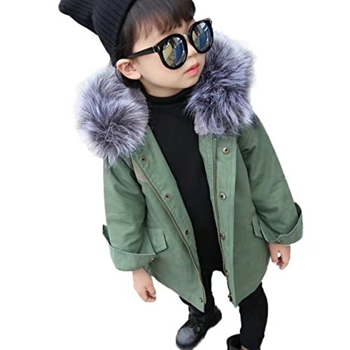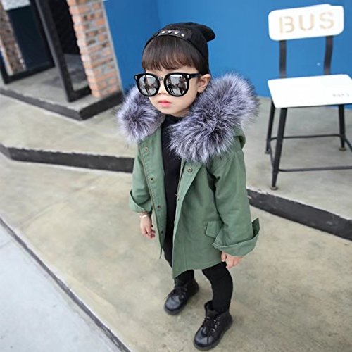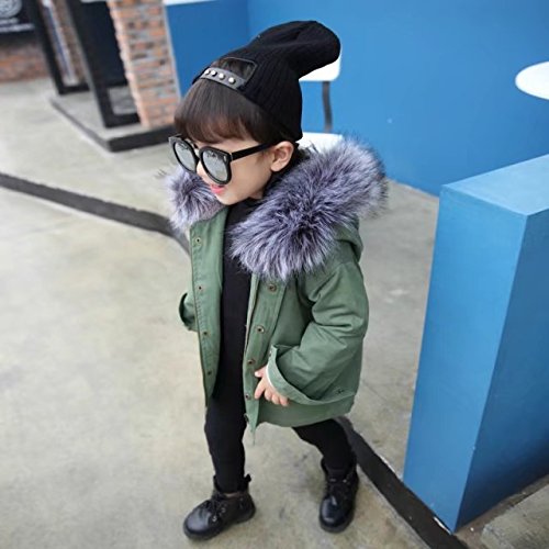 AMIGOYO キッズ服 キッズ服 コート ファー付き ブルゾン 裏起毛ジャケット 中綿コート 韓国スタイル アウター 女の子 裏ボア 子供服 フード付き 厚手 防寒着 日常着 秋冬