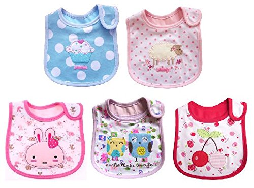 - 刺繍がかわいい!ベビー用防水よだれかけ5枚組です。