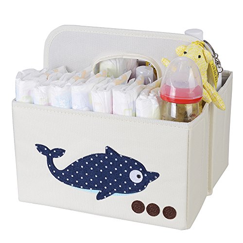 ANG 収納ボックス 防水 オックスフォード 折りたたみ 取っ手付き 多機能 オムツ 収納 雑物収納 小物整理 便利 おしゃれ 改良版(ホエール)
