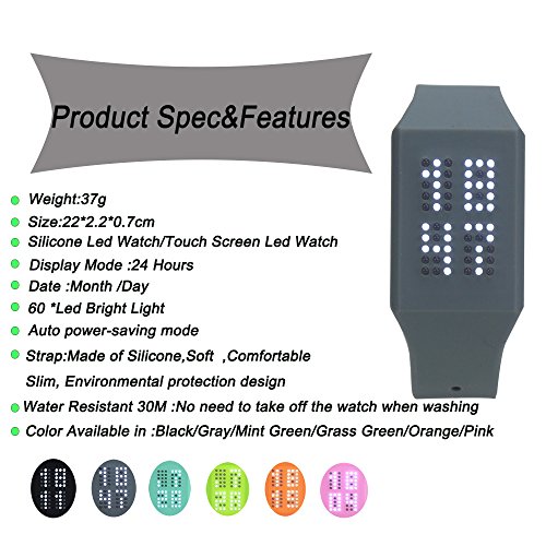 - 60個明るいLEDタッチスクリーン、暗闇の中時間と日付を表示すること、確認することができる。
