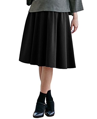 ANGELIEBE エンジェリーベ マタニティ 産前 産後 対応 フィット ポンチ フレア スカート (2レングス展開) 妊婦服 仕事着 M~L ミモレ丈 ブラック 21622 21622402