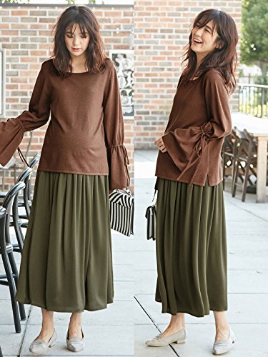 ANGELIEBE エンジェリーベ マタニティ ヴィンテージ サテン ギャザー マキシ スカート 妊婦服 産前 産後 フリー カーキ 22155 22155300