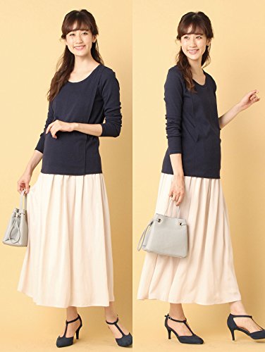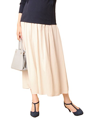 ANGELIEBE エンジェリーベ マタニティ ヴィンテージ サテン ギャザー マキシ スカート 妊婦服 産前 産後 フリー アイボリー 22155 22155100