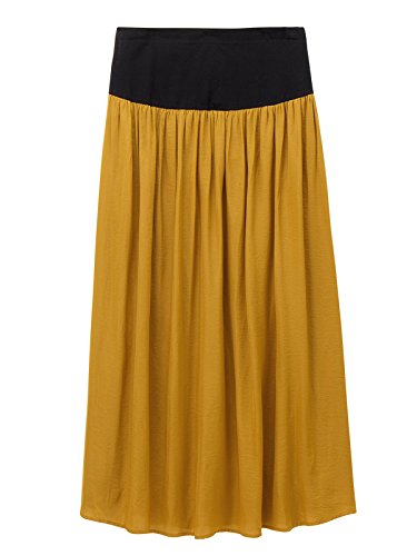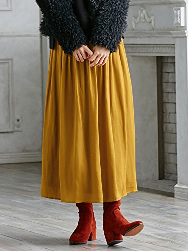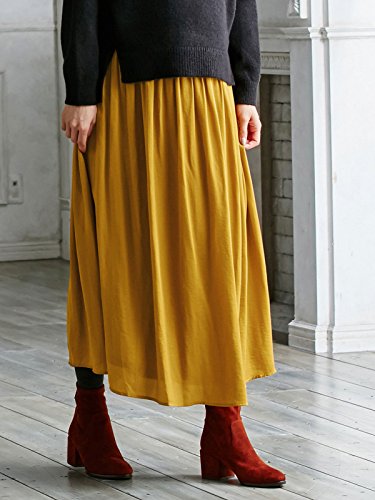ANGELIEBE エンジェリーベ マタニティ ヴィンテージ サテン ギャザー マキシ スカート 妊婦服 産前 産後 フリー マスタード 22155 22155600