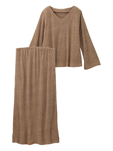 - ●【単品でも着まわせるセットアップで楽ちんトレンドスタイルに】Vネックが女性らしいAライントップスは、ベルスリーブと袖口のスリットで旬な着こなしを演出。それぞれ単品でも使えて着まわし力抜群のセットです。リブニットのように見えるニットソー素材で、あたたかみのある風合いに。