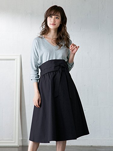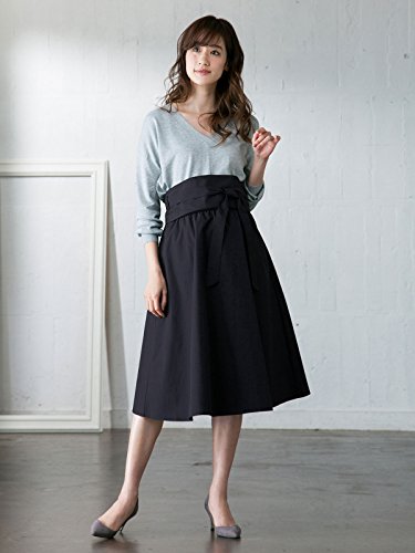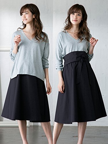 ANGELIEBE エンジェリーベ マタニティ スカート ベルトセット サッシュベルト 付き フレアスカート 妊婦服 産前 産後 アジャスター調節可 L ネイビー 22455 22455270