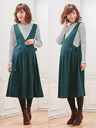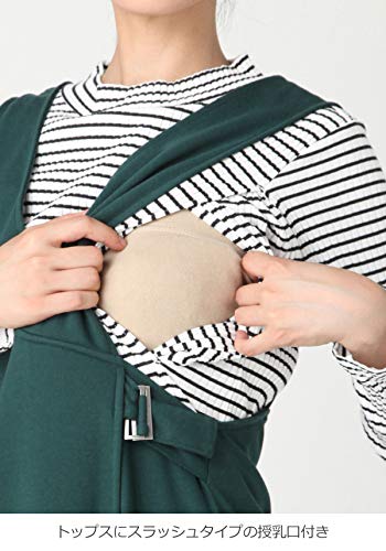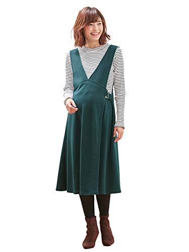 ANGELIEBE エンジェリーベ マタニティ 授乳口付 ポンチ ジャンパースカート & リブインナー Tシャツ セット 産前産後 長袖 M グリーン 22804 22804260