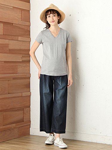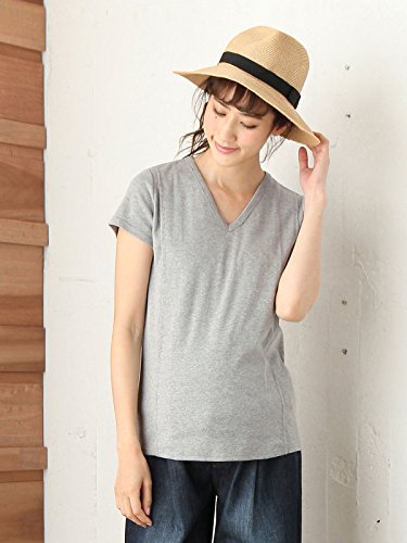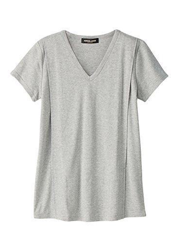 ANGELIEBE エンジェリーベ マタニティ 授乳口付き Tシャツ 綿混 やわらか フライス 半袖 Vネック 授乳服 産前 産後 M ~ L 杢 グレー 21757