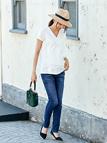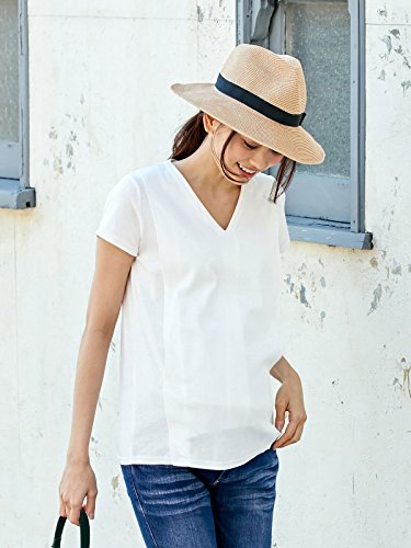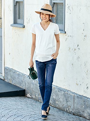 ANGELIEBE エンジェリーベ マタニティ 授乳口付き Tシャツ 綿混 やわらか フライス 半袖 Vネック 授乳服 産前 産後 M ~ L ホワイト 21757