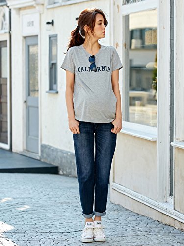ANGELIEBE エンジェリーベ マタニティ 授乳口付き ロゴ Tシャツ ( プリント 2タイプ ) 妊婦服 産前 産後 フリー CALIFORNIA グレー 21769 21769400
