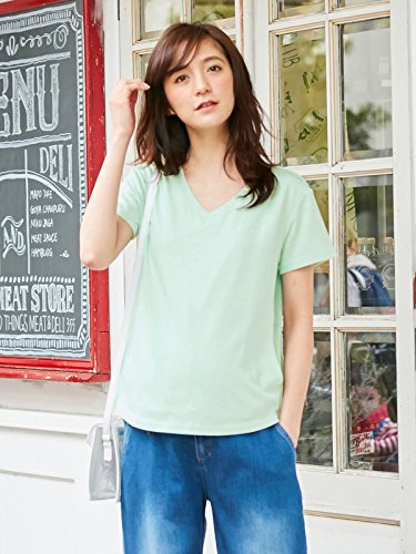 ANGELIEBE エンジェリーベ マタニティ 授乳口付き スラブ風素材 Vネック Tシャツ 授乳服 産前 産後 半袖 トップス M~L 杢グリーン 22423 22423402