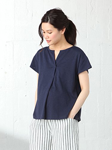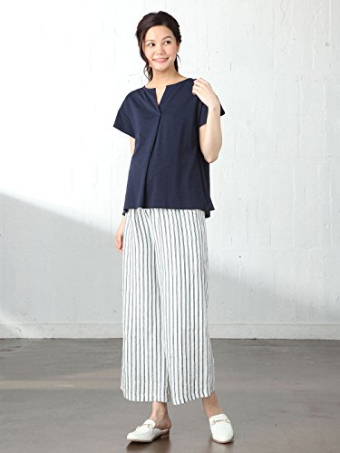 ANGELIEBE エンジェリーベ マタニティ 授乳口付き シルケット加工 フレンチスリーブ プルオーバー 授乳服 産前 産後 トップス S~M ネイビー 22415 22415301