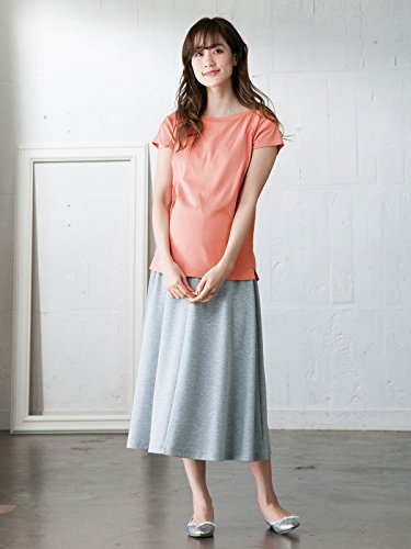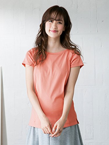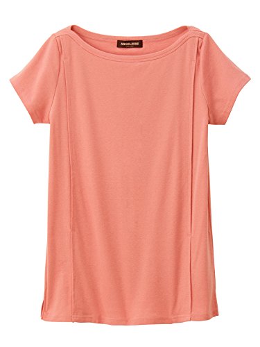 ANGELIEBE エンジェリーベ マタニティ 授乳口付き Tシャツ 綿混 やわらか フライス 半袖 ボートネック 授乳服 産前 産後 S~M ピンク 21760