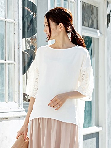 大柄フラワーレースのスリーブがアクセント。ドロップショルダーや太めのスリーブなど、今シーズンのトレンドをギュッと詰め込んだトップスです。