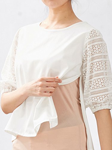 ANGELIEBE エンジェリーベ マタニティー 授乳口付き レース スリーブ ブラウス 妊婦服 産前 産後 M~L アイボリー 22524 22524102