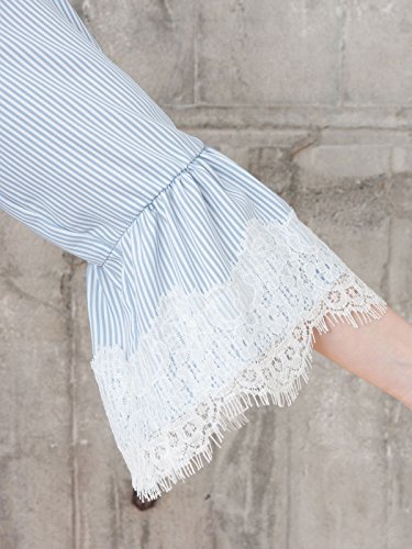 - ●【袖口レースや脇スリットなど、どこから見ても美しい主役級アイテム】トレンドのフレアスリーブを、繊細レースで一層フェミニンに。脇にスリットを入れたバックコンシャスデザインで、全方向どの角度から見てもキレイ見えするブラウスです。
